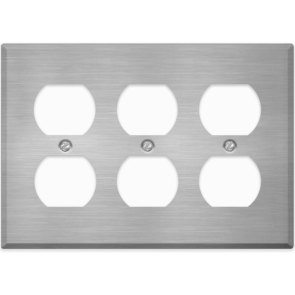 3-Gang Stainless Steel Duplex Outlet Wall Plate – Standard Size (Model 97103)